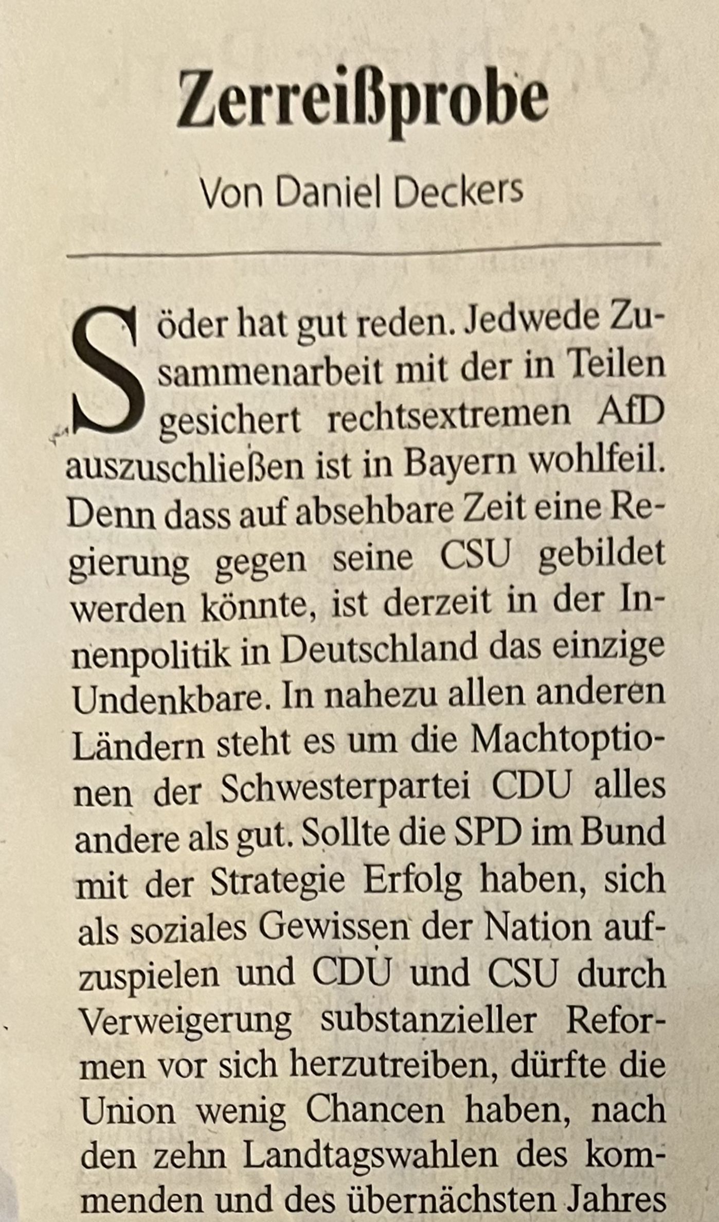 Apropos: Die SPD will auf ihrem Parteitag am Wochenende allen Ernstes ein AfD-Verbotsverfahren einleiten. Eine Bund-Länder-Arbeitsgruppe soll ganz viel prüfen, dazu ernst gucken und bestimmt auch #NieWiederIstJetzt-Sticker verteilen. Die deutsche Sozialdemokratie gibt wirklich alles, um sich weiter zu marginalisieren