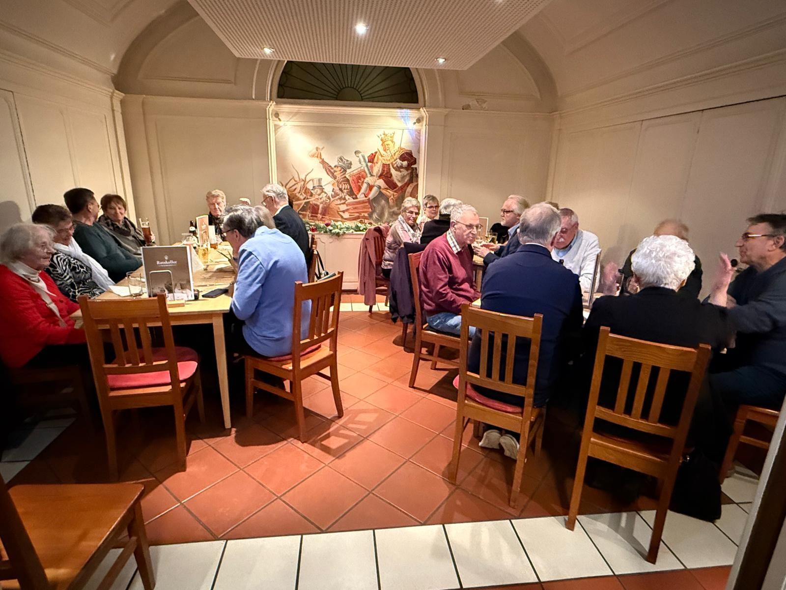 Mitte November trafen sich die Seniorinnen und Senioren des Ortsverbandes der SU Hattersheim bei einem Stammtisch im Wickerer Weinlokal Venino. Bei Wein und leckerem Essen führte man angenehme Gespräche. Gerhard Neudert hatte sein Akkordeon mitgebracht. Eifrig sangen die Stammtisch-Besucherinnen und -Besucher zu den volkstümlichen Klängen des Akkordeons. Am Ende des Abends waren sich alle einig. Es war ein gelungener Abend.
