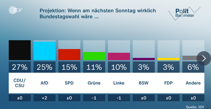 Das neueste Erhebung des Politbarometers im ZDF macht mich sprachlos und muss jeden gestandenen Demokraten und jede Demokratin fassungslos machen.