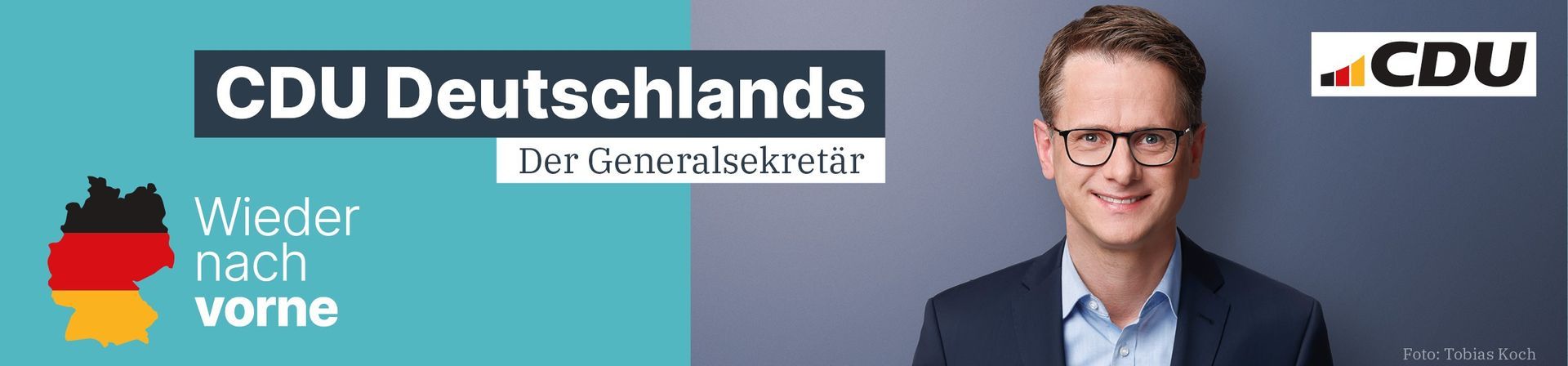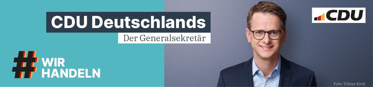 PS: Heute können Sie den Generalsekretär schon wieder live hören – beim CDU Live mit Wolfram Weimer. Um 17:30 Uhr geht’s los – schalten Sie gerne ein: