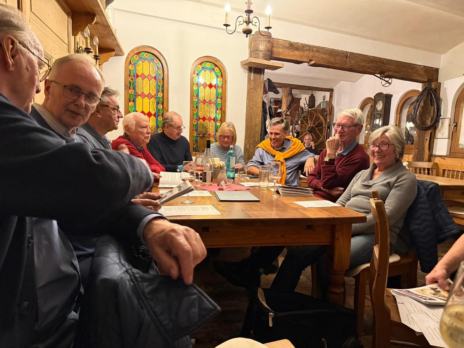 Mitte November trafen sich die Seniorinnen und Senioren des Ortsverbandes der SU Hattersheim bei einem Stammtisch im Wickerer Weinlokal Venino. Bei Wein und leckerem Essen führte man angenehme Gespräche. Gerhard Neudert hatte sein Akkordeon mitgebracht. Eifrig sangen die Stammtisch-Besucherinnen und -Besucher zu den volkstümlichen Klängen des Akkordeons. Am Ende des Abends waren sich alle einig. Es war ein gelungener Abend.