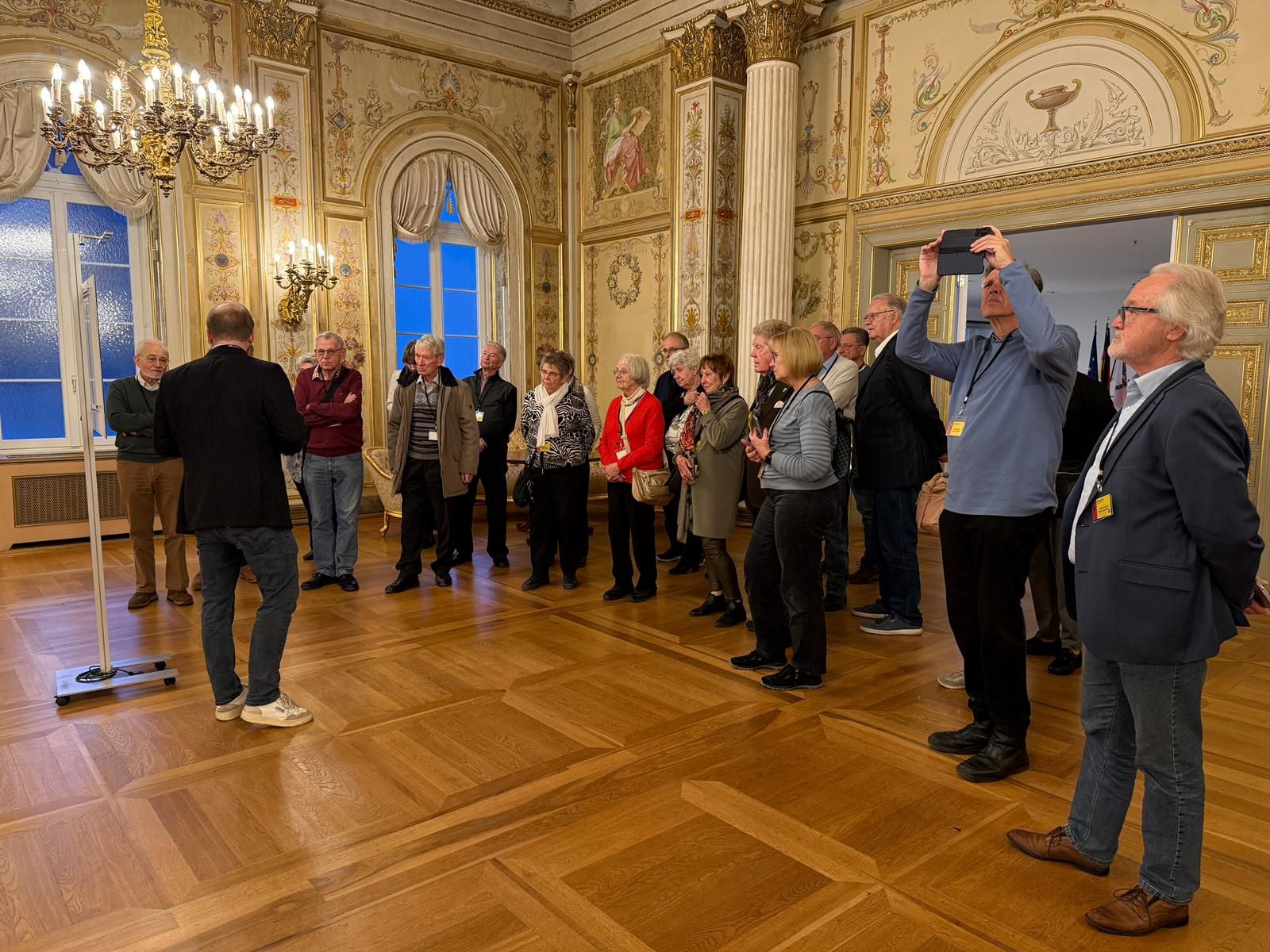 Nach den kurzweiligen und interessanten Ausführungen des Ministers folgte eine Führung durch das Schloss und den Plenarsaal. Auf dem Weg durch das Gebäude sah die Besuchergruppe sowohl den Prunksaal, in dem Gäste empfangen werden, als auch die Räume, wo Politik gemacht wird.